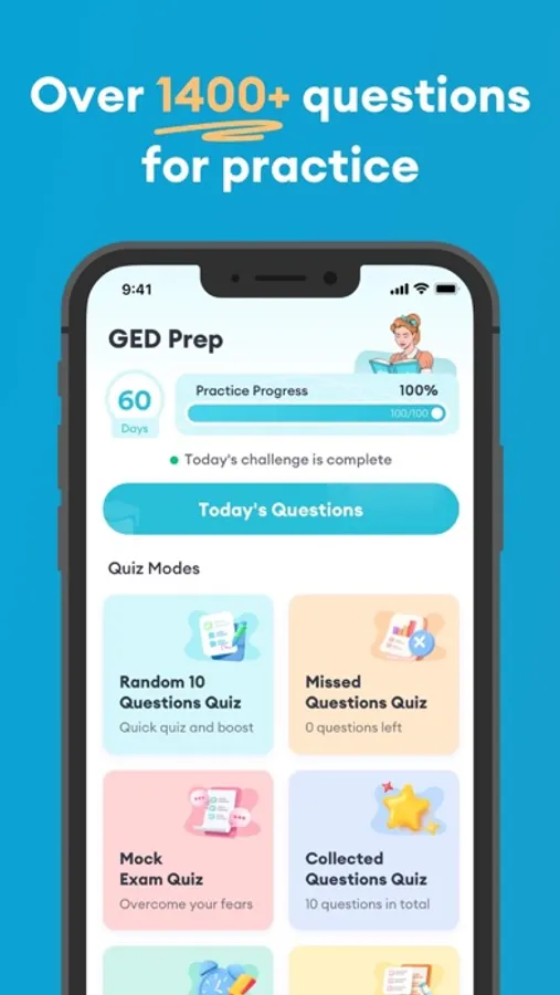 GED® Test Prep 2023 is an application that has been carefully designed and developed by industry test experts. It has over 1,400 high quality test questions with answer explanations, multiple test modes and a scientific analysis system to help you practice efficiently anytime, anywhere, giving you a better chance of passing the GED test on your first try!