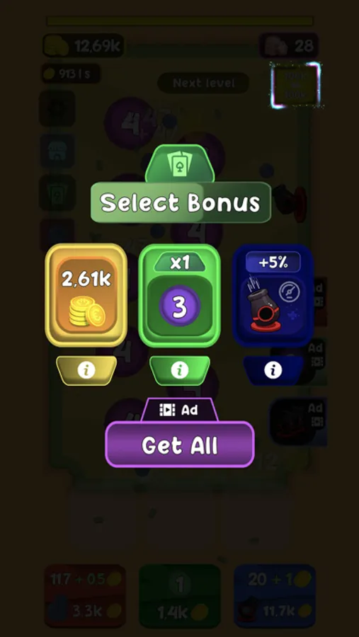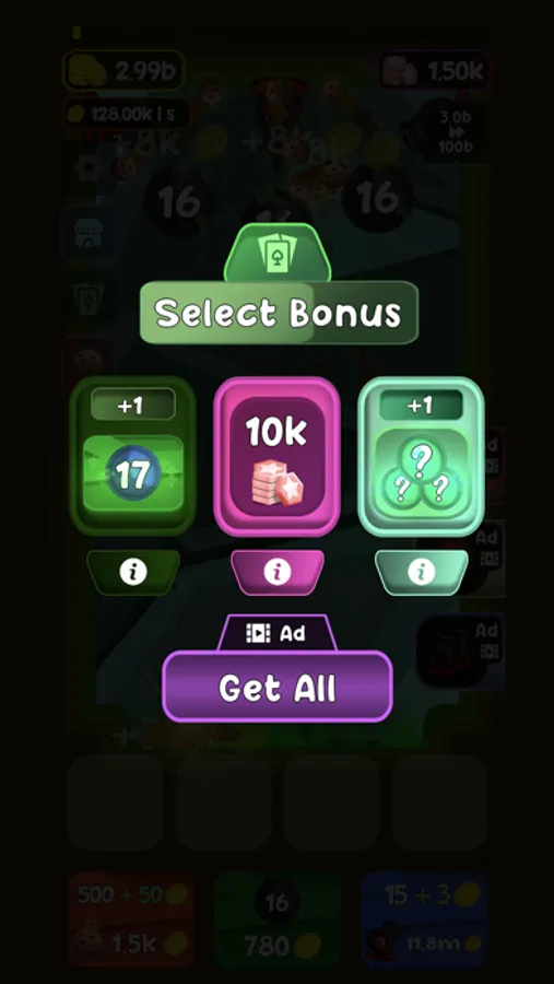 You will also have a crucial choice to make, every minute 3 bonuses will be offered to you, choose the right one to increase your income in the long term!