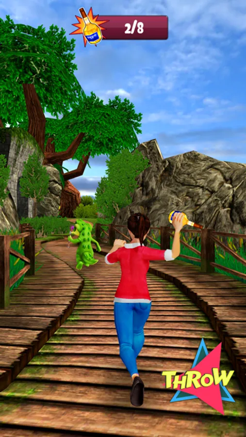 Chase the beast by avoiding obstacles, Catch it by throwing or kicking fruits and vegetables on them!