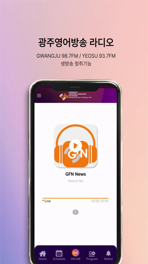 ON AIR: 광주영어방송에서 실시간 라디오를 즐기실 수 있습니다.