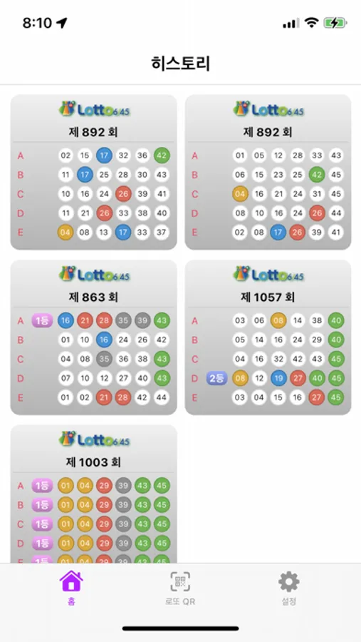 - 각 회차별 당첨 결과를 확인하고, 저장한 번호와 비교하여 당첨 여부를 손쉽게 알 수 있습니다.