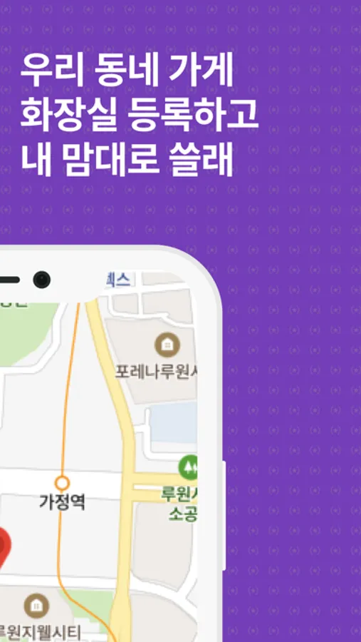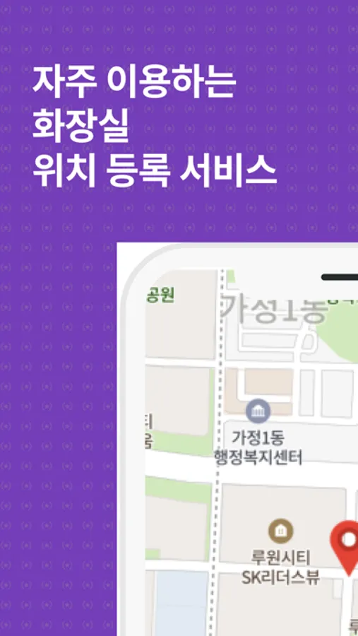 2. 저장 후 지도에 빨간 마커 표시가 생깁니다. 두 번 "탭" 하면 저장했었던 화장실 정보가 나타납니다