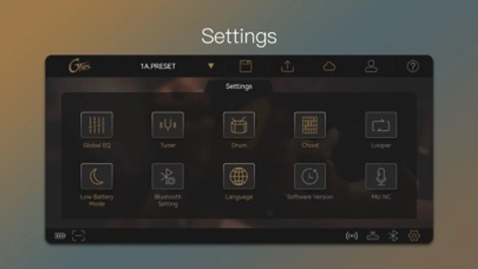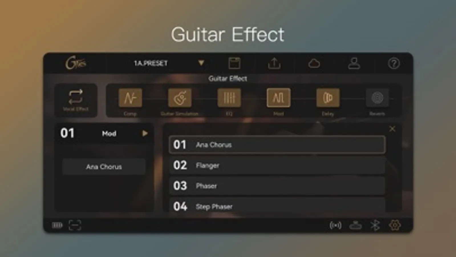 GTRS Coustic APP is a mobile control software used with GTRS acoustic guitar. Through the App, users can edit effects, adjust parameter settings, enable auxiliary tools for practice and access the Cloud function.
