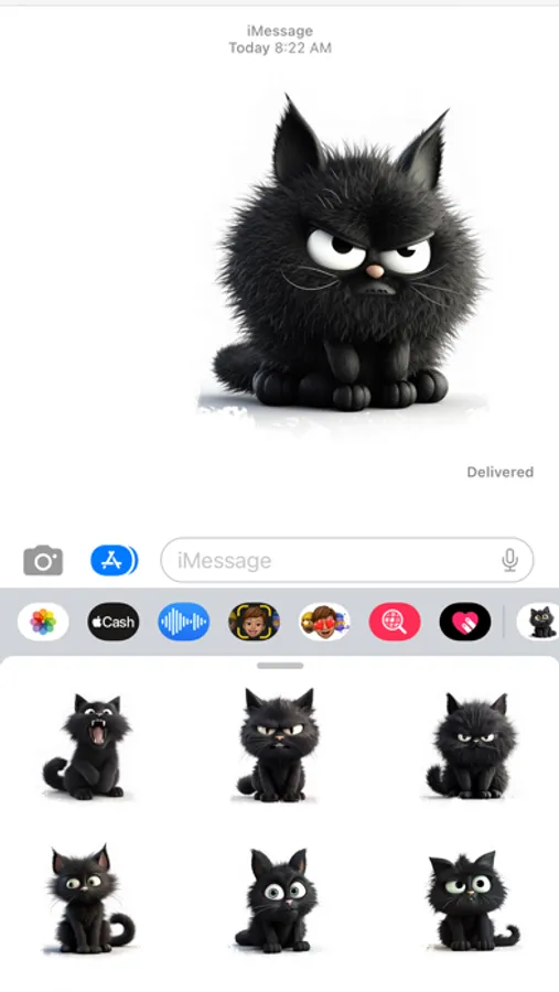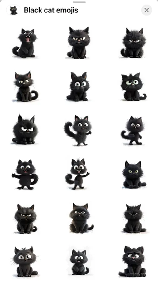 Sprinkle some feline magic into your messages with our Black Cat emoji stickers pack! These 3D black fuzzy kitties are the purr-fect way to express your moods and emotions. From playful to mysterious, our cute and quirky creatures will add a touch of enchantment to your texts. Let these adorable black cats bring a sense of fun and whimsy to your conversations. Get ready to unleash the meow-tastic power of these furry friends in your iMessages!