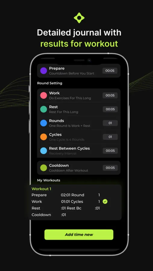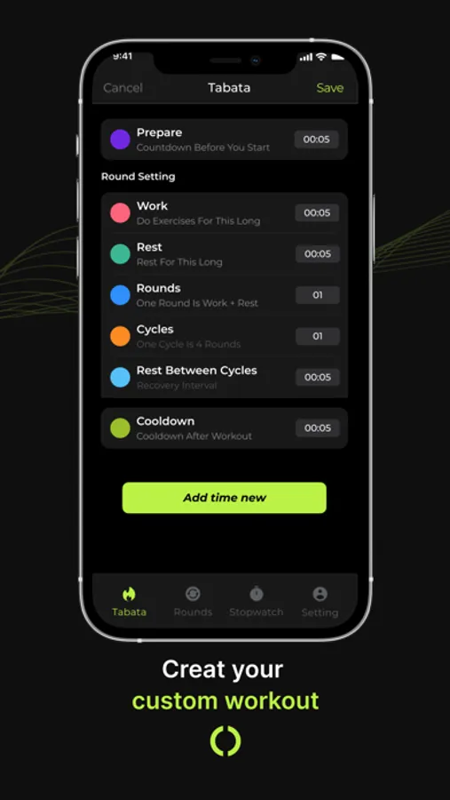 Set up, edit and save your own workouts with the customizable feature. Add as many intervals as you like. You can add a 10 second rest period and a 20 second work period, as well as a 5 second interval between exercises.