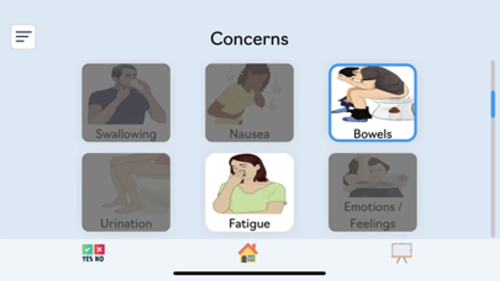 The MedConcerns app combines nonverbal symbols, spoken output, and print to make