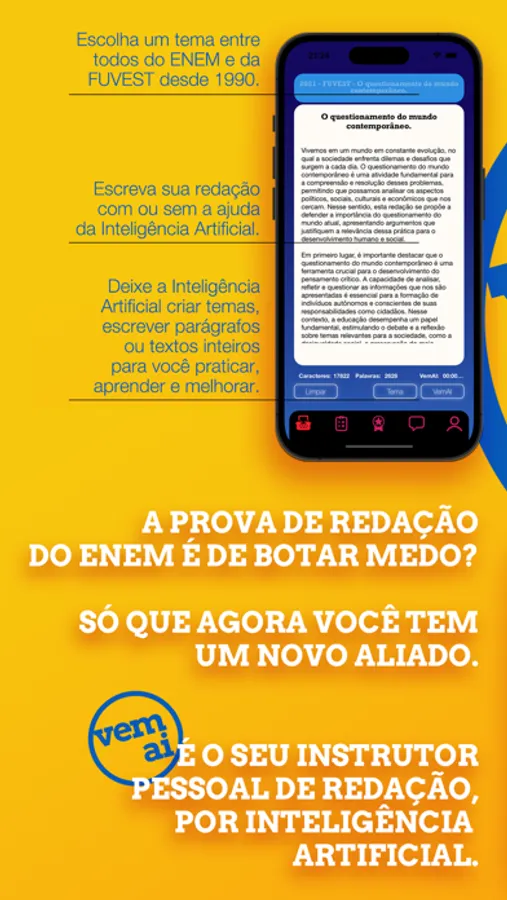 VemAI é seu parceiro de redação para o ENEM e outros exames.