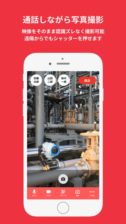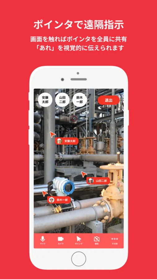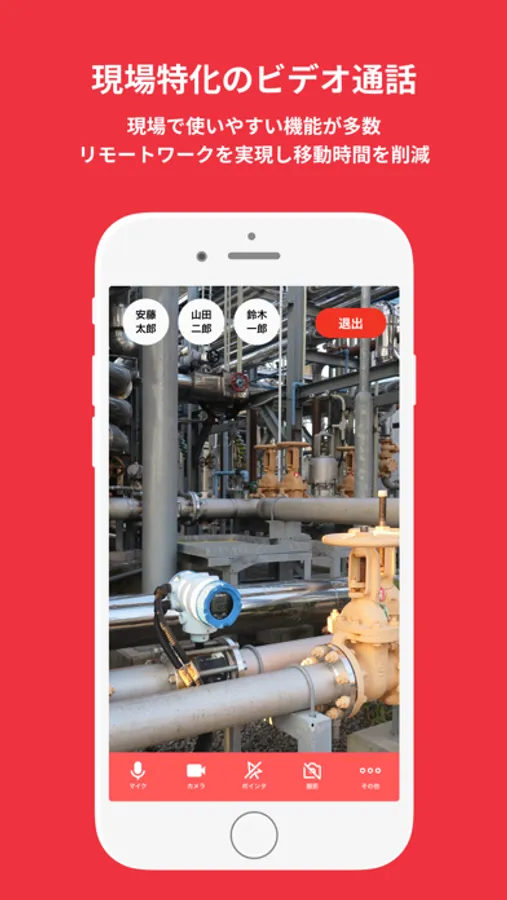 ビデオ通話をしながら、ポインタ共有で遠隔でのコミュニケーションを実現できるアプリです。現場にいかずとも用事が済むため、移動時間の削減ができます。