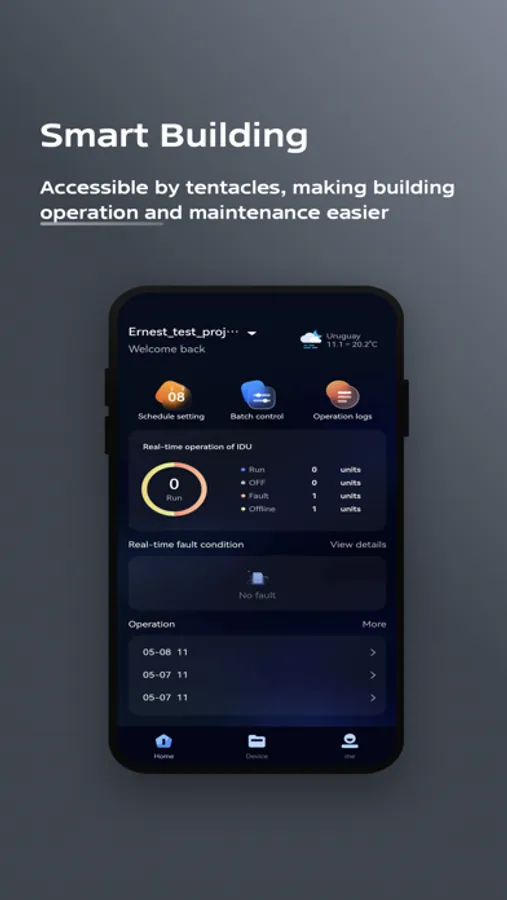 iEasyComfort is produced by iBUILDING, serving commercial central air conditioning users. As your 24-hour handheld air conditioning expert, we break the constraints of time and space and connect you with the distance between the device. iEasyComfort can provide real-time monitoring, remote control, batch centralized control, schedule setting and other services for devices, and support multi-dimensional management of devices by project and group, helping you manage devices anytime and anywhere.