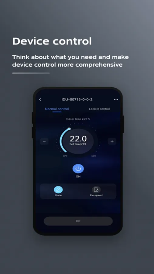 【Remote device control】: Remote control of air conditioning, including routine control and locking control of multiple parameters such as start stop, temperature, mode, wind speed, etc;