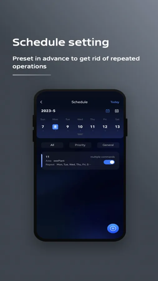 【worry free schedule setting】: Set the schedule for periodic scenarios in advance, and the system will automatically issue instructions to control the equipment at that time;