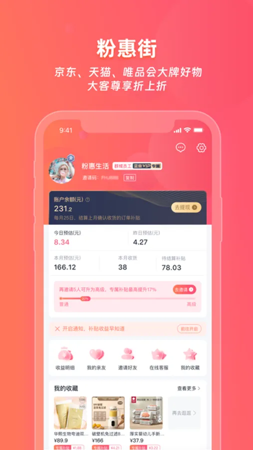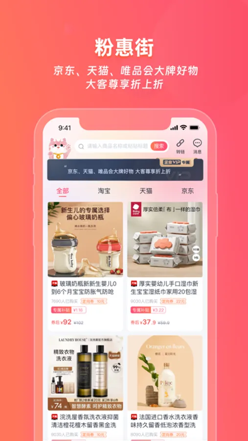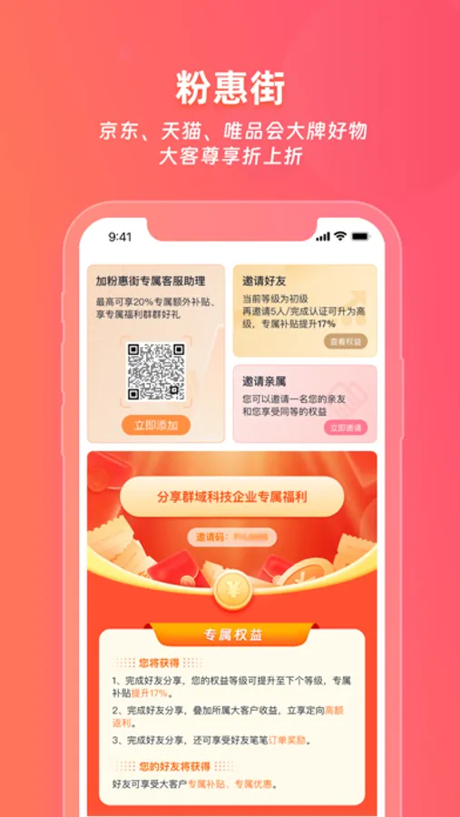 下载粉惠街APP,成为大客户内购福利用户,立享京东、天猫、唯品会大牌好物折上折,每单更有大客户专属补贴"