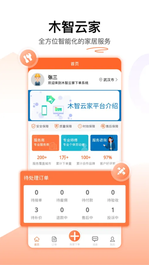 木智云家APP是木智云旗下专为全国需要家居安装、维修、保养的服务平台。木智云家致力于打造具有全方位智能化家居服务,让每一位客户享受高品质的智能定制生活。