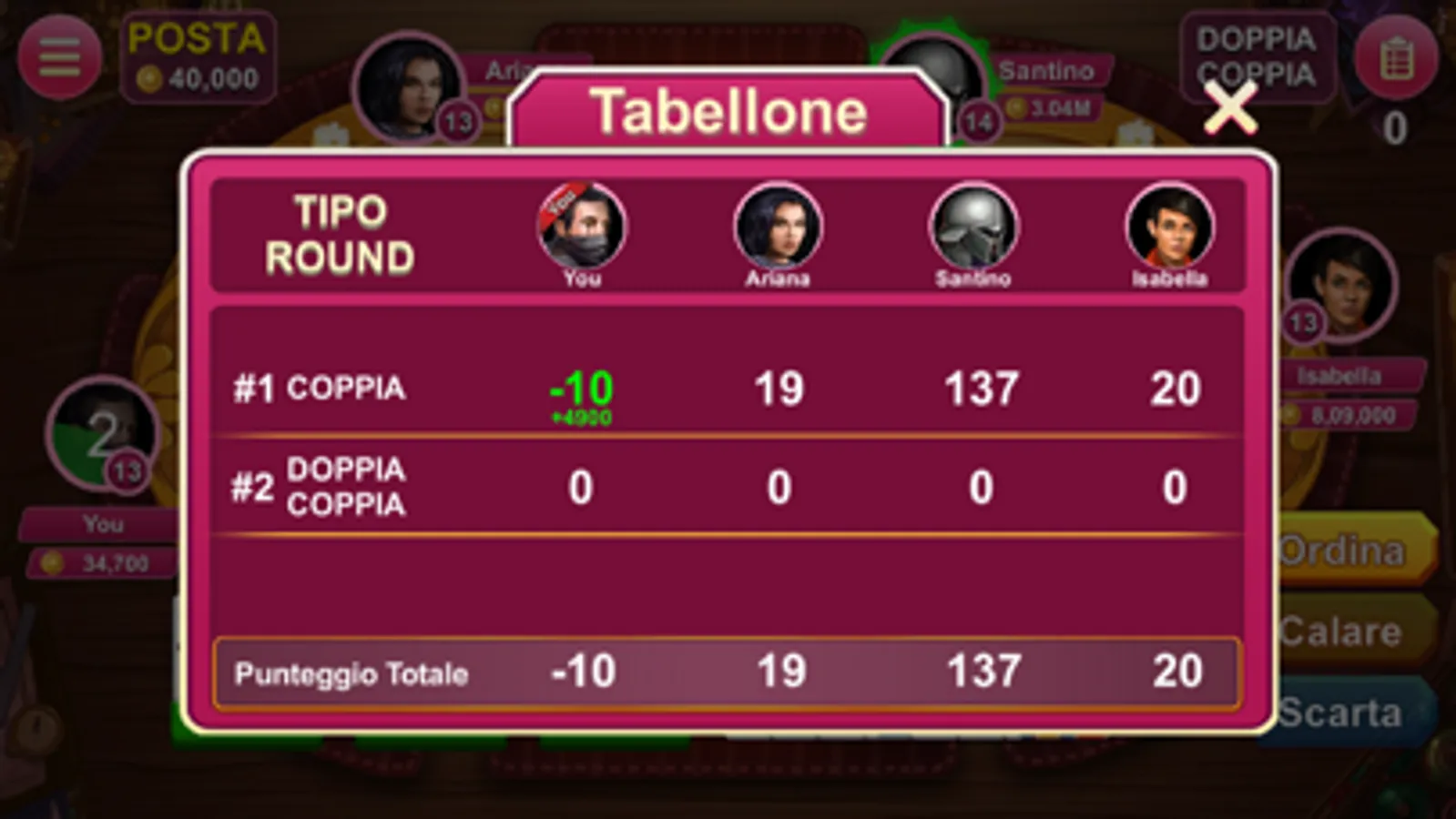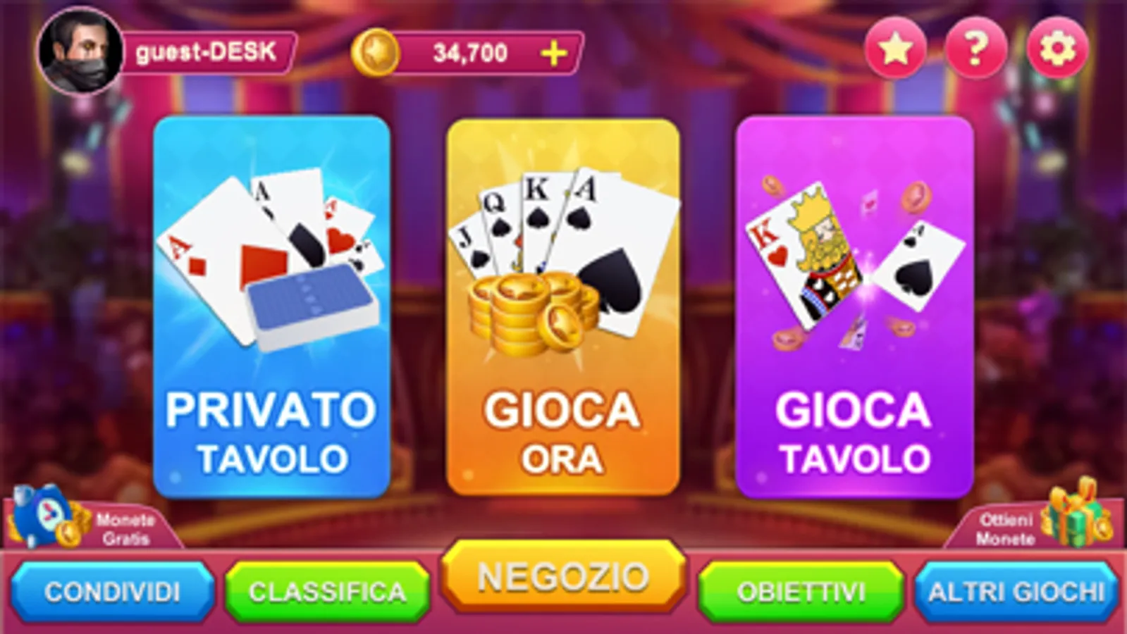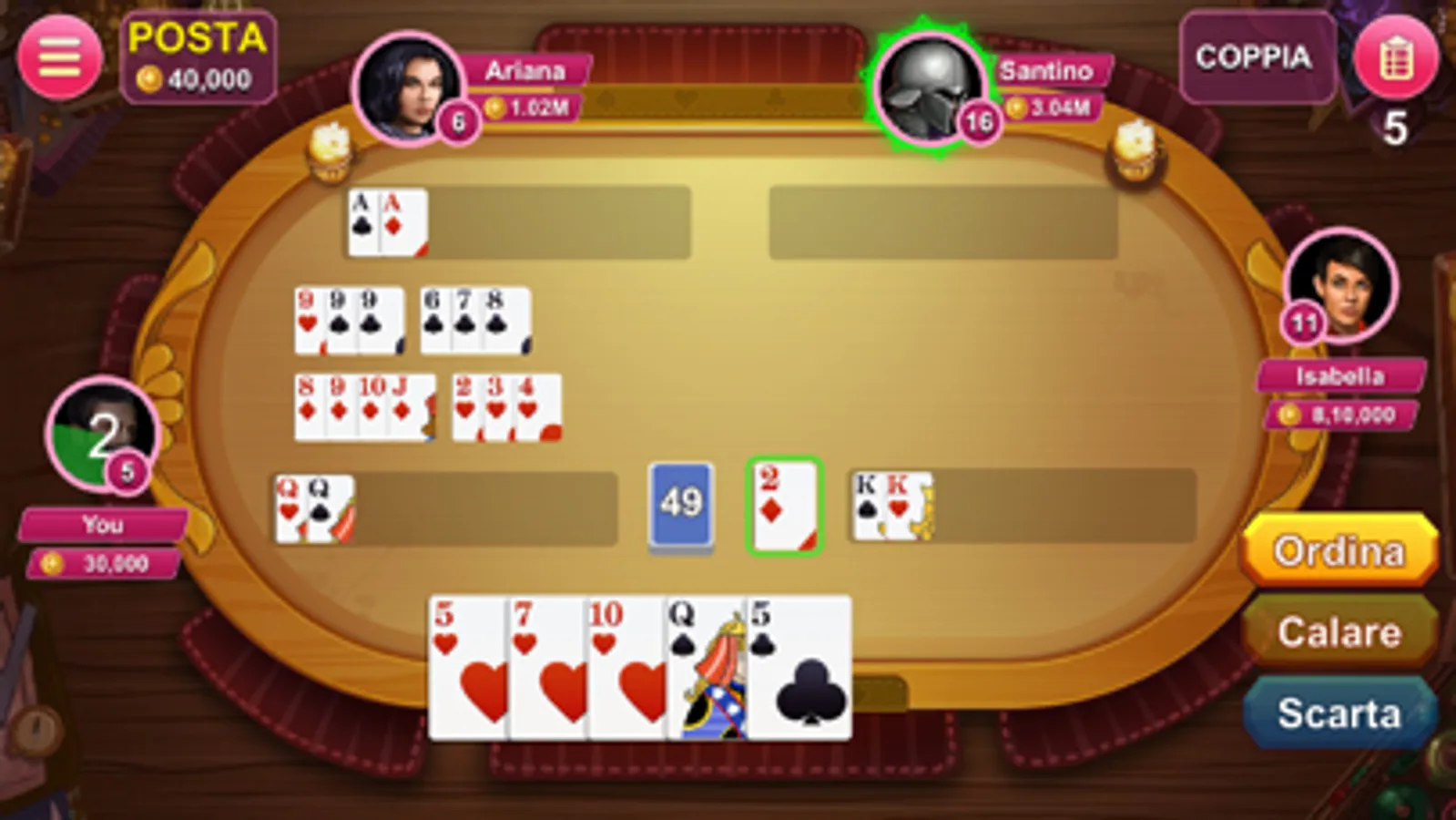 Il gioco della CARIOCA nella versione classica con gli 8 round (coppia, doppia copia, tris, full, poker, scala40, scala reale e chiusura), sblocca i vari tavoli e scala la classifica