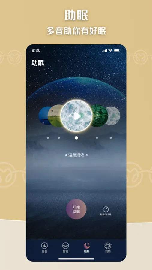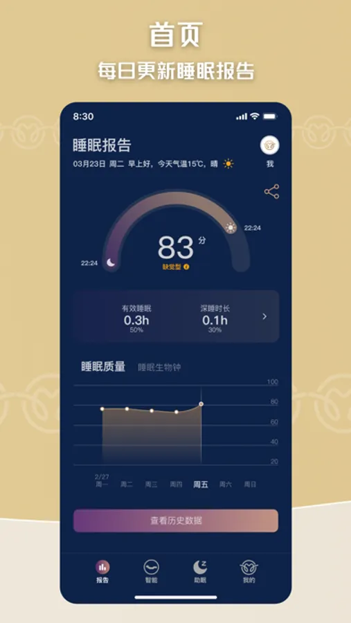 查看睡眠报告(需搭配眠虫发售的智能设备使用);