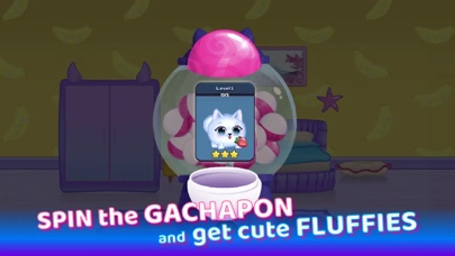 Immerse yourself in the world of cuteness and funny fluffies! Spin the gachapon, open the capsules and get a new pet, feed and care for him, get special bonuses, and don't forget to play with your pet so that he will be always in a good mood! Our little furry friends will be very happy with your attention!