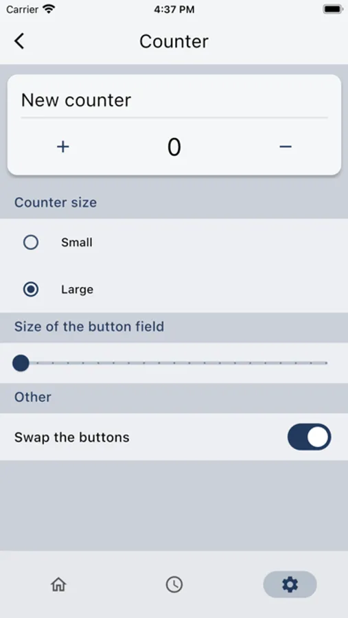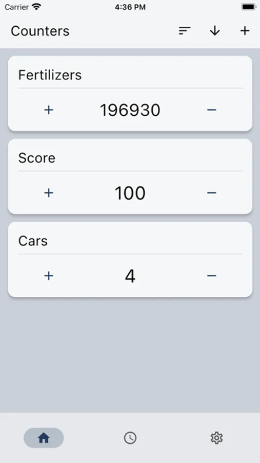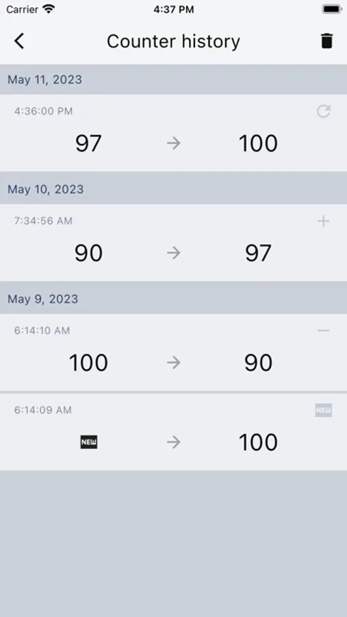 - Track all actions taken on counters in the history. Access both grouped overall history for all counters and detailed history for each counter individually.