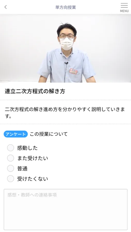受講中のコース、科目に基づいた単方向映像授業を視聴いただけます。
