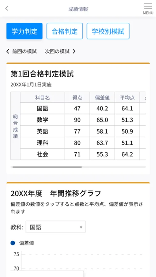 通学校舎、生徒番号、受講している科目などをご確認いただけます。