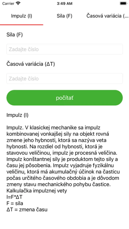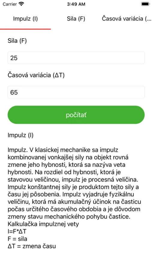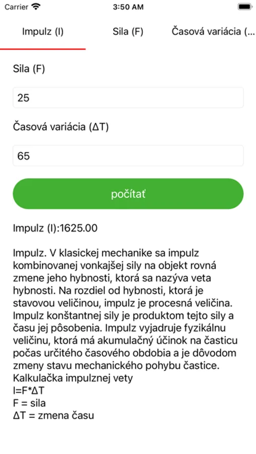 Toto je nástrojový softvér na výpočet impulznej sily. Používateľ zadá hodnoty parametrov, aby získal požadovaný výsledok výpočtu.