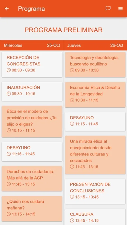 - Programa detallado de todas las actividades