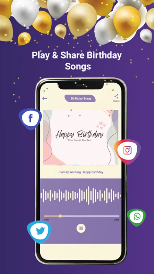 Happy Birthday song is a great way to celebrate your birthday. There is a traditional way to sing "Happy Birthday" song. It offers Latest and trending collections instrument music like piano, Drum, Flute, guitar birthday songs, popular birthday songs, pop music, group music that can make you feel happy. Huge collection of happy birthday songs that can be sent to friends and family via social media or apply background song at your birthday party. Moreover you can also select song country wise like Arabic, Chinese, English, Hindi & many more.