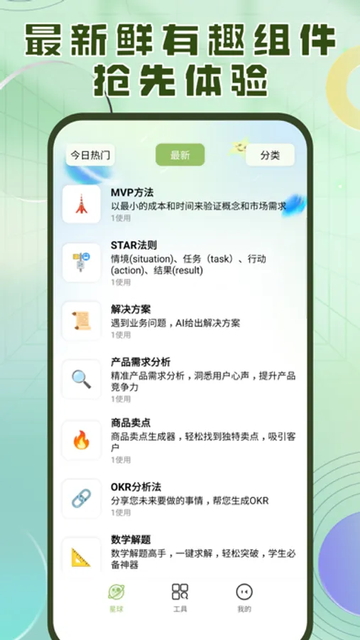 洽氪是一个好用、丰富、极具创新能力的实用工具创作分享社区,操作简单,且避免了下载安装超多应用的难题,日常需求一站式解决。每天都有众多创作者来洽氪“找寻灵感”:发现实用工具、找到乐趣、表达需求……洽氪能满足人们生活及工作中的各式需求:搜索和浏览各种有趣工具组件、创作者之间互动交流、发表创作心得、分享优质工具等等,还能通过本地功能,动动小手就能自己生成出所需要的工具产品。目前工具还在持续新增中,已有“程序员解题、小红书文案、OKR分析法、高情商回复、废话艺术、拒绝Boss...”更多好用好玩等你来探索!