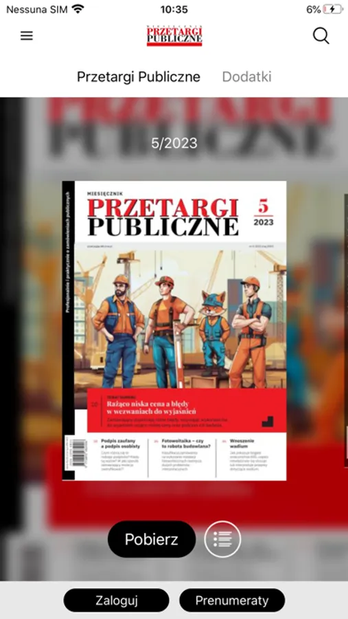 Aplikację Przetargi Publiczne możesz pobrać bezpłatnie. Umożliwia ona dostęp do elektronicznej prenumeraty zakupionej u wydawcy, a także zakup subskrypcji bezpośrednio w aplikacji.