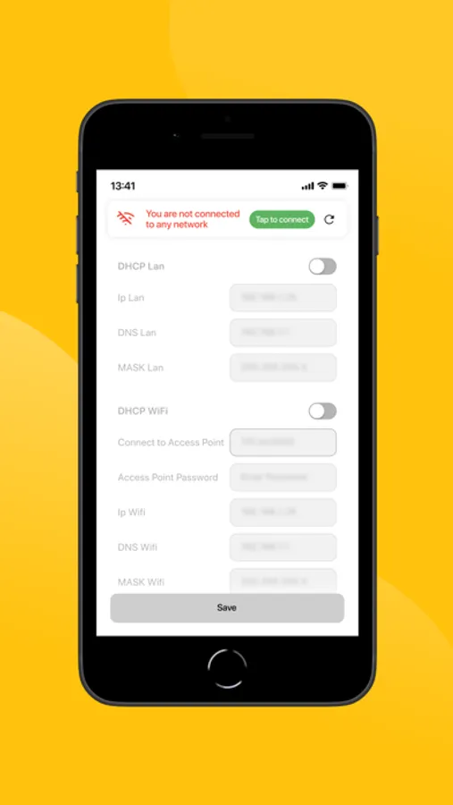 This application allows you to configure the connection of charging stations from different companies, such as AutoEnterprise, Infinite Charge, EVA Chargers. You can set the connection type, such as GSM, LAN or Wi-Fi, and enable DHCP or configure the connection parameters manually.