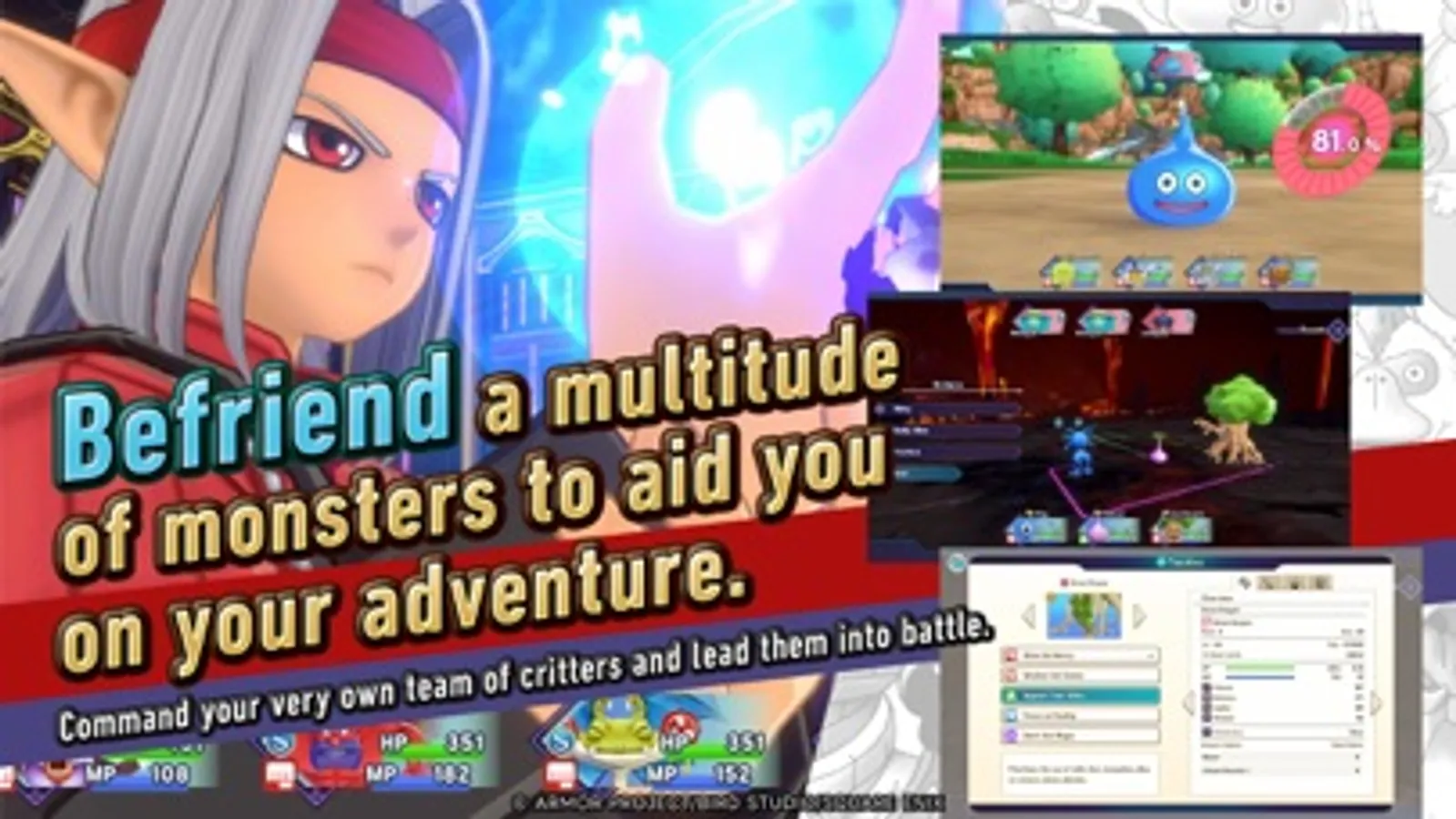 Compose your very own team of monsters from across the Dragon Quest series and engage in thrilling battles against your foes. Recruit monsters from the wild world around you and combine them to synthesize new creatures as you see fit. With over 500 monsters to choose from and a revamped synthesis system to explore, you can mix and match to you heart's content to create your favorite cute critters and dastardly supervillains, as well as brand-new additions to the monstrous roll call.