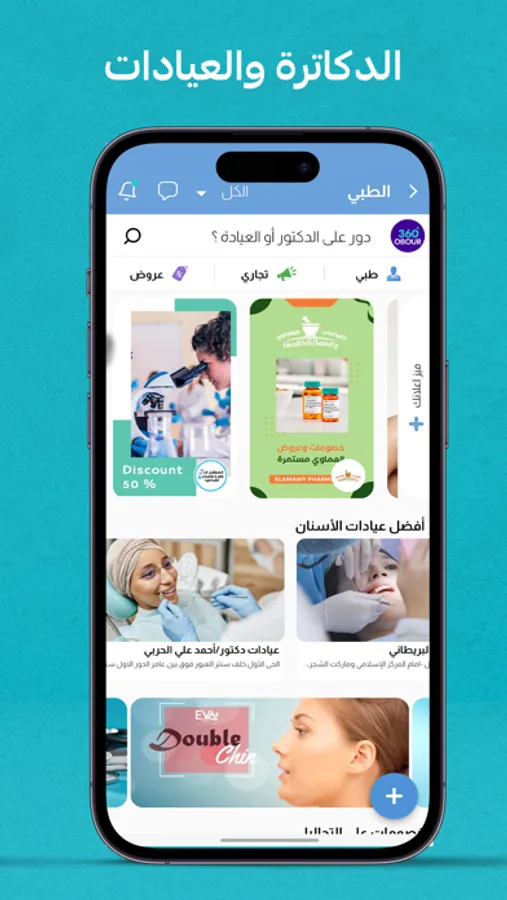 و بس تدخل القسم الطبي هتلاقى كل التخصصات و تشوف كل العيادات و وعروض كتيرة .
