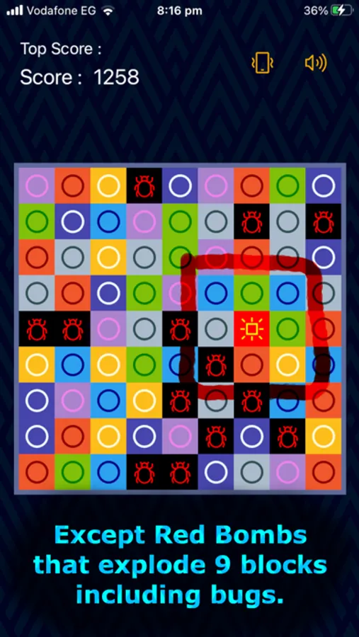 In the game playing field, you will find cell colors, sound effects, as well as the presence of special stones and bomb.