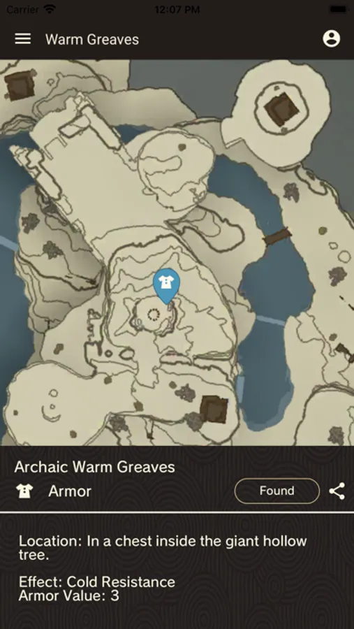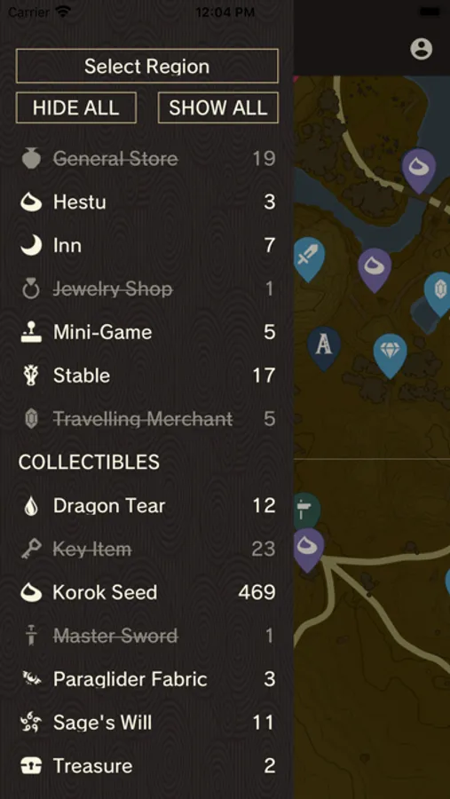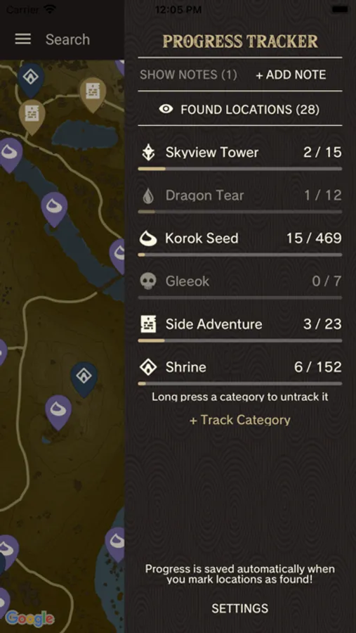 • Progress Tracker - mark locations as found and track the progress of your collectables.