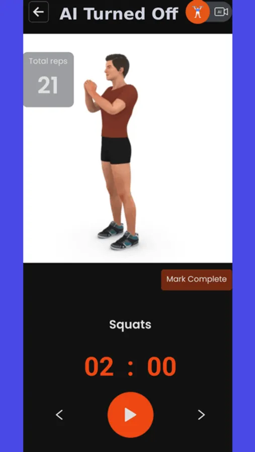 The Ai continuously monitors the exercise till the exercise timer expires.