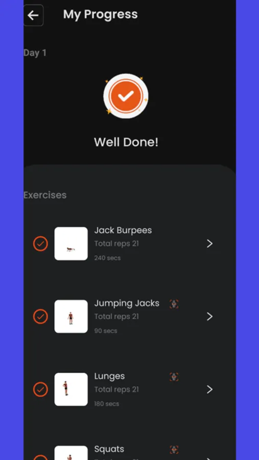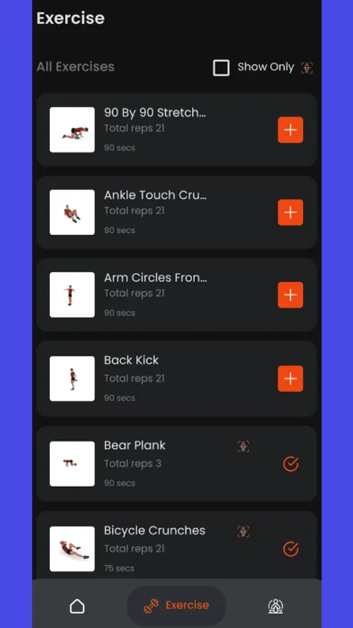 Along with the personalized exercises we also provide access to the a library of home workout exercises that you can add to your daily plan. The library includes a variety of exercises, such as strength training, cardio, and yoga.