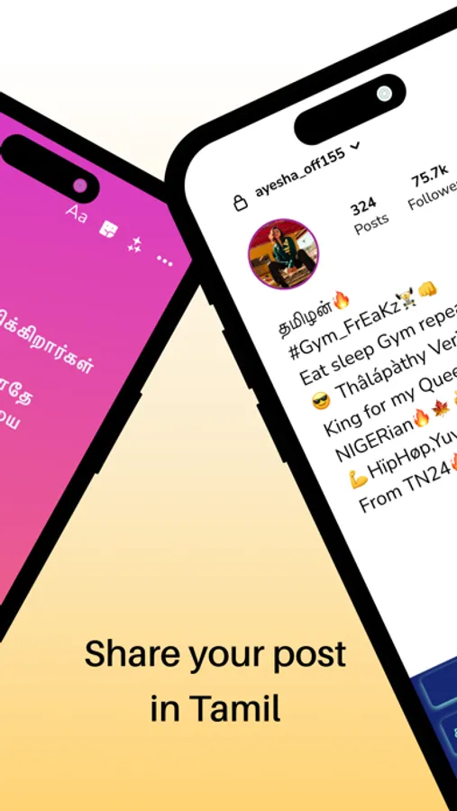 With Tamil Keyboard, can write in the beautiful Tamil font in any application on the iPhone. Write your unique profile name on in any social media apps using Tamil font keyboard which can be added easily into your iPhone keyboards.