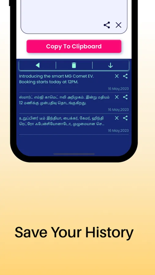 You can save your Tamil text inside application it self. You can use your text for later use too.