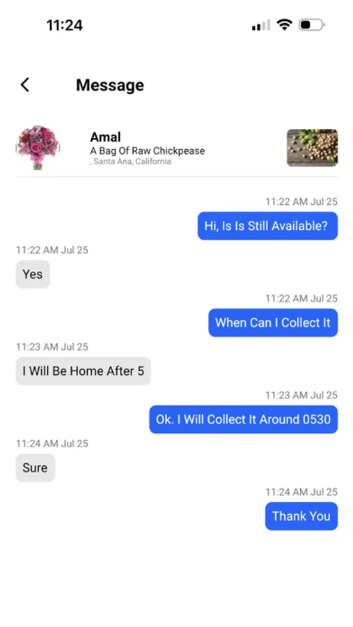To bolster the efficacy of food sharing, FoodShare enables users within the designated radius to engage in direct chats with food posters, facilitated by an in-app messaging system, thus encouraging fluid communication among interested parties and the food post.