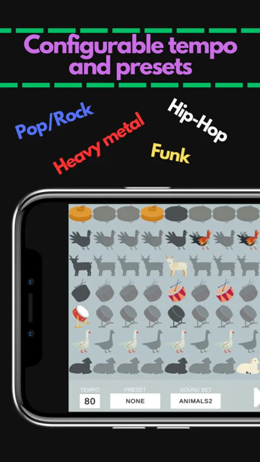 Drum machine: Farm is a beginner friendly drum accompaniment and music creation app.