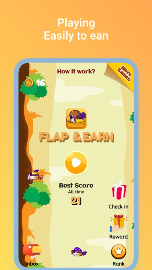 Flap to Earn and Earn is a unique mobile game that lets you have fun while earning real money. Simply fly your bird through obstacles to collect coins and exchange them for cash rewards. With its intuitive one-touch controls and engaging gameplay, Flap to Earn and Earn offers hours of entertainment and the opportunity to earn money on the side. Unlock new characters, compete with friends, and earn real money while having fun. Download Flap to Earn and Earn now and start earning today!