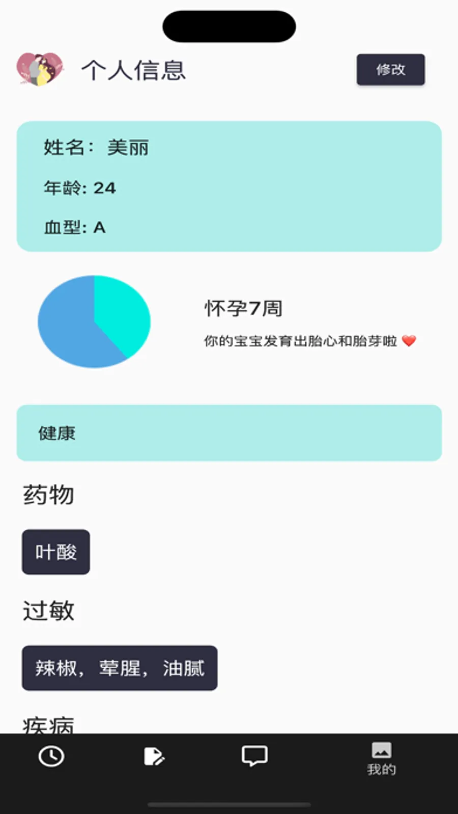 记录下怀孕期的禁忌药品,不良生理反应,过敏药物,疾病常理。