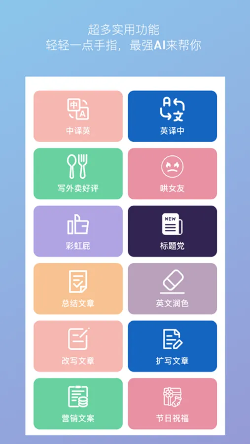 Gopot提供了多种实用的功能,让你的交流更加智能和便捷。你可以使用它来翻译中英语言、写外卖好评、扩写文章、哄女朋友等。无论你是在学习还是工作,Gopot都能成为你生活中的得力助手。