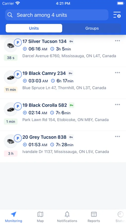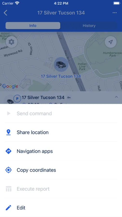 - Commands. Send core commands from “Units” and “Tracking” tabs.