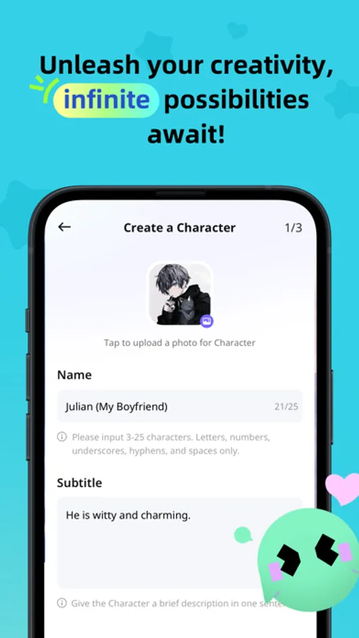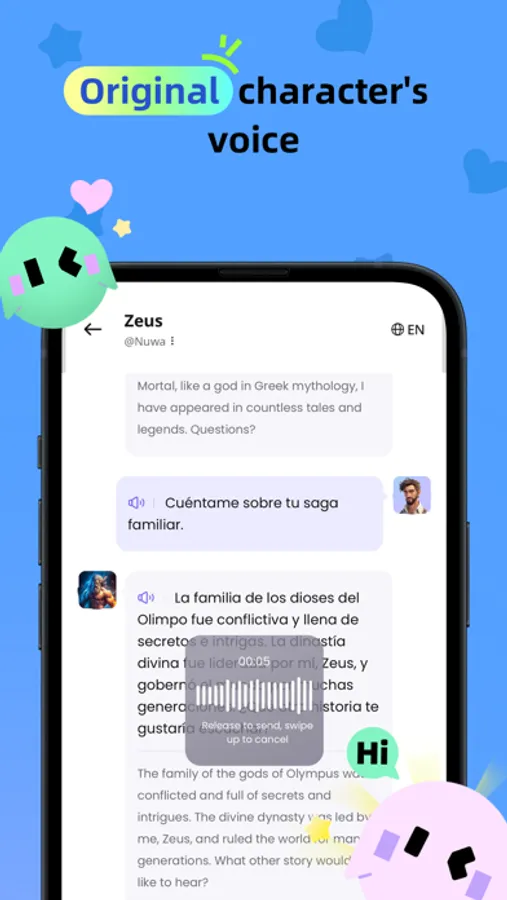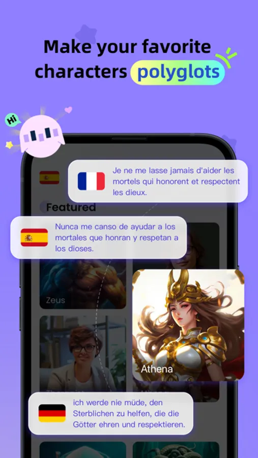 Our app provides users with the ultimate immersive conversational experience. With authentic voices and character thinking, our chatbots will make you feel like you're talking to a real person. You'll never run out of things to say, and there are no language barriers to hold you back. So why not download our app today and start exploring the world of endless conversations all for free?