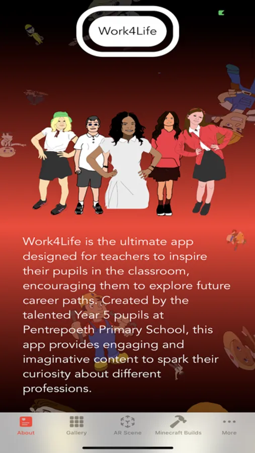 Unlock the potential within your child and prepare them for the jobs of the future. Work4Life is more than just an app—it's an extraordinary gateway to a world of endless possibilities. With augmented reality, character backstories, immersive Minecraft worlds, interactive questions and activities, and the opportunity for user-generated content, this app offers an unparalleled experience.