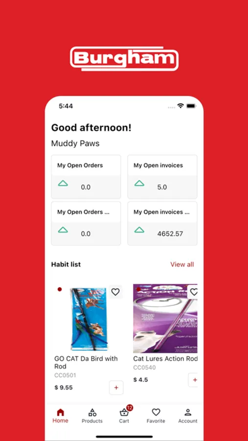 Burgham Sales customer portal app that offers a convenient and seamless shopping experience for users. The app allows users to browse through a wide range of products from various categories with easy-to-use filters and search functions, users can quickly find what they are looking for and place their order. The app also features personalized recommendations and the ability to build favorite lists for easy shopping and ordering.