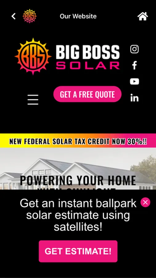 Big Boss Solar is a free app available for anyone to download and is used to communicate with Big Boss Solar. It is as simple as downloading the App and register as a user. Once registered, you can begin communicating right away. We will reach out to you keep you updated via push notifications and in-app messaging to improve your overall buying experience. Once you purchase your a Product from Big Boss Solar, feel free to write a review. We appreciate your feedback.