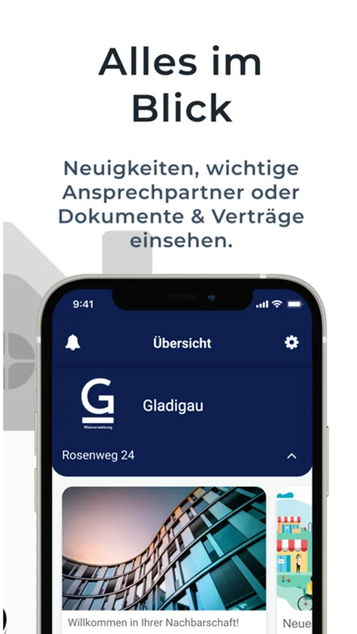 Willkommen in der digitalen Welt von Gladigau Immobilien. Nehmen Sie direkt mit uns Kontakt auf und klären Sie Ihre Anliegen schnell und unkompliziert. Hier erhalten Sie alle relevanten Informationen rund um Ihre Wohnungen / Ihre Gewerbeeinheit. Nutzen Sie insbesondere folgende Funktionen: