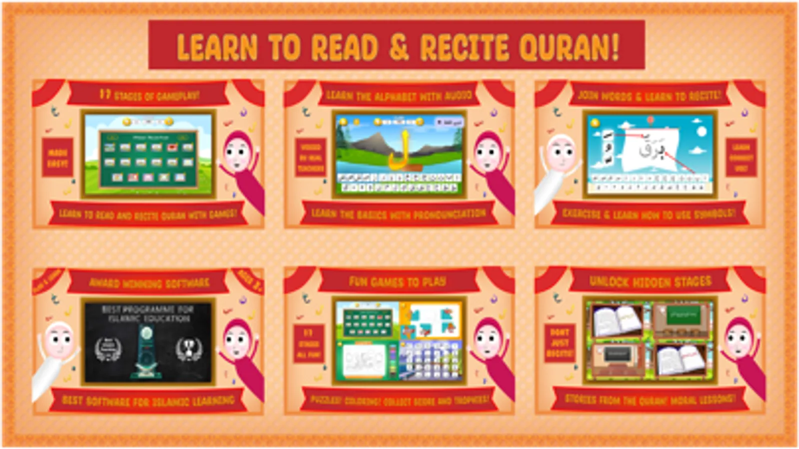 Award-Winning software for Islamic Education in which children can learn to read and understand the basics of Quranic Arabic through fun interactive games, stories, and more.