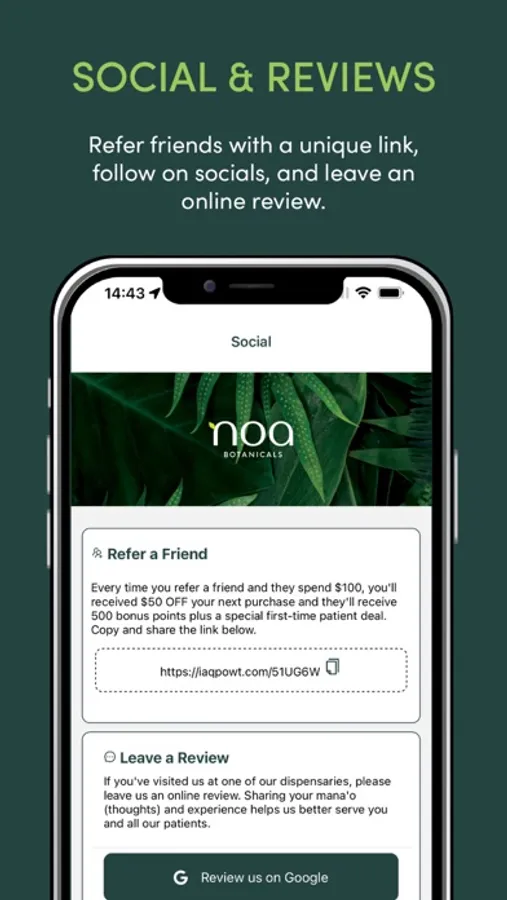 Whether you’re at home, on the way to the dispensary, or shopping with us in-store, our mobile app brings the best of Noa Botanicals to your mobile device. Sign up for our Malama Rewards loyalty program to earn points and access exclusive deals and rewards.